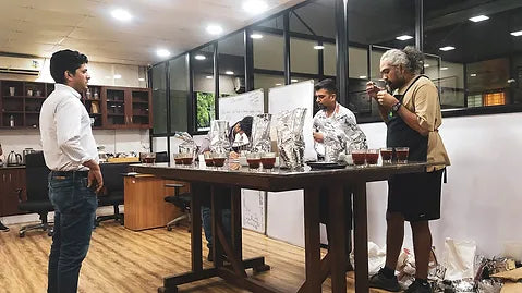 Rajeev is a cinematographer and Me (Pratiksha) is an environmentalist. Coming from the realm of creating narratives and environmental preservation, we wanted to harmonize the storytelling craft with a commitment to sustainability, akin to blending diverse elements into a cohesive ecosystem. Beyond cinema, Rajeev cultivated a refined palate for coffee. He'd noticed a significant gap in the availability of quality coffee in Visakhapatnam-Araku Region, leaving people unfamiliar with the delights of well-crafted, non-charred, and less milky coffee.